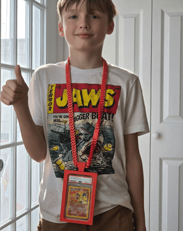 My son loves his slab chain, DonsKarpShop was able to use my childhood Charizard PSA graded card and color match it with a color changing red and orange to match his flames. I will definitely use them again!